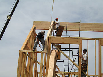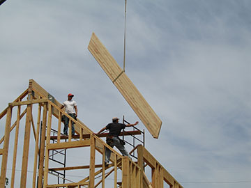 The framers move it into place . . . |