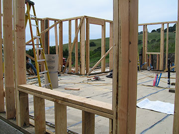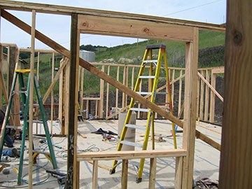 After lunch, the guest cottage crew finished framing the rest of the walls. The trusses for the roof have been designed and approved. Because of the truss design, there will be a beam across the front of the little bay window inside the living room of the guest cottage. Tom, who is running the framing of the guest cottage, was going through the list of wood from the supplier, trying to puzzle out where everything was to go. He said, “Oh, I guess that piece is for the window seat." “What window seat?” I asked. “The one in the bay window,” came the reply. |