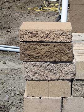 While I was getting the pins, I also got a new piece of cap to try out on the wall. The cap I bought is sitting on top of the painted block and is supposed to be the same color as the blocks below, although you can see that this is not true. Either they have changed their formula somewhat or my blocks have faded badly in the years they have been sitting in the sun. Actually, this picture makes them all look much pinker than they are in reality. We plan to stain the blocks with a diluted version of the barn stain. I am not sure if I want to get this type of cap and if I do, whether I will want to stain it or leave it to contrast with the rest of the wall; we will have to see. |