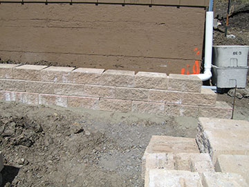 Kai and his helper also made a start on the retaining wall before they ran out of pins to connect the blocks. I went to run some errands and picked up a box of pins for them, but by then it was late and they had to take the forklift back. I imagine they will get most of the wall done before I get back up there on Friday. |