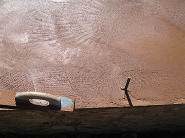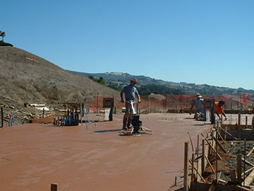 Here is the way the slab looked after the final hand trowel. Contrast this picture with the one from last week taken from the same place—what a difference a slab makes. |
