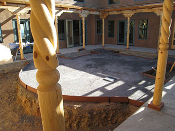 Kai and his assistant spent the morning hiking gravel into the courtyard and compacting it with a vibra-plate. | |