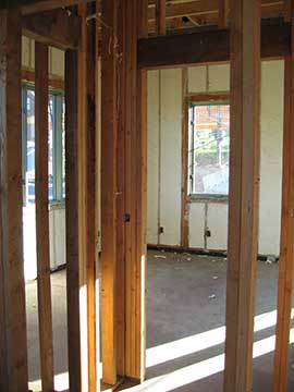 Next week they will start installing drywall, so I took a few last pictures looking through the studs. It is going to be so hard to take photos once the rooms are closed in because of the limitations of my camera. I am already having a hard time in the master bedroom and the wine closet was just impossible to do. | |