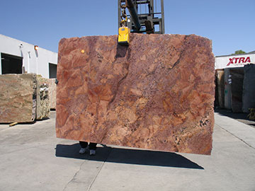 Notice that this piece and the one above are what is called book-matched. That means that the pieces are consecutive slabs of stone with the two facing sides finished. If you look at the two photos, you will notice the patterns are running the opposite directions. If you put the pieces side to side, they mirror each other. This is done a lot in wood for cabinetry as well, so that panels on French doors match, for instance. | |