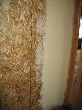 While we were waiting to pass our inspection, work slowed down on the job, so I am combining 2 weeks into one page. I have been having angst about the interior paint color and got a new—slightly yellower—color to try out. The new color is on the right. This wall in the living room is north facing, so it has gets the least direct light of all the walls; thus, it is a good one to test paint on, since it will be the the darkest at all times. The color on the right actually looks much yellower in real life. The camera does not reproduce the color accurately and of course, your monitor does something completely different with it. |
