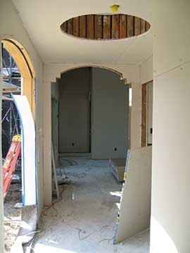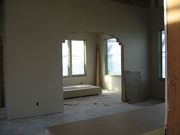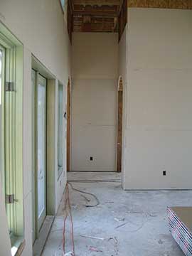 Looking toward the dinning room from the foyer you can now get a better sense of the space with the sheetrock up. | |