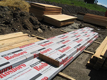 Here are some glue-lam beams to be used in the barn roof. I later learned that the short one on top was delivered by mistake and we are awaiting the main beam. |