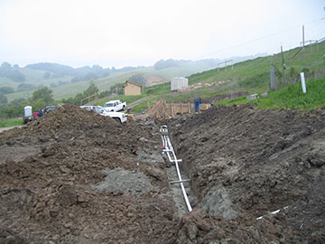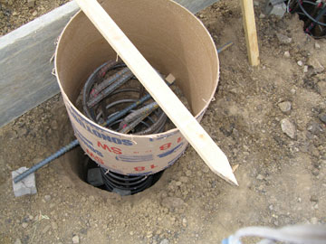 Forms for piers and grade beams on the guest cottage. Jim Kerr, the electrician