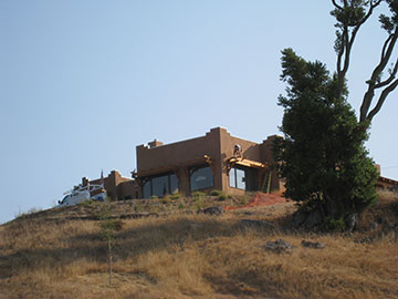 I took this picture from the rose garden of him up on the dining room bracket installing latillas. | |