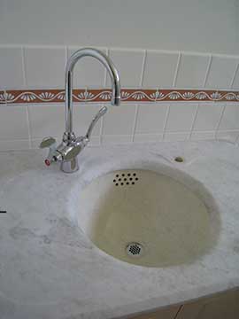 The sink was installed too and looks pretty good although it is a little warmer in color than the marble counter. | |