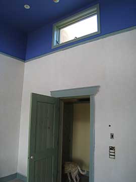 After a discussion with the painter, I agreed to have him bring the ceiling color in the master bedroom down to the picture rail. Everyone else likes it better, but I am not so sure . . . Well it’s a done deal now, so I guess it will stay. The bedroom looks unfinished to me, but maybe it’s because the tape is still up and the stencil is not done. I need to cut the stencil and get going on that. |