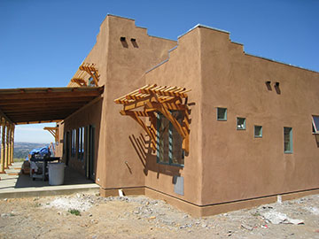 The plasterers were putting the final color coat on the slab insulation. What a relief to get that on. | |