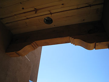 Also, one of the more elaborate shade brackets was complete—this one over the master bathroom window. As you can see from the shadow on the building, it does actually shade the window! There will be brackets like this over all the windows with the roll-down shutters in the kitchen, dining room, living room and guest bedroom. |