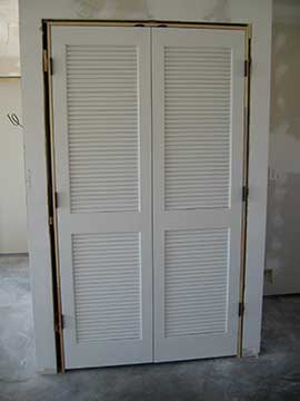 The louvered doors are in on the laundry closet and look great. This was a concern because they are a main feature in the living room/kitchen and it would not do to have them be ugly. |