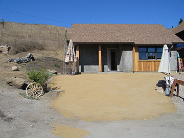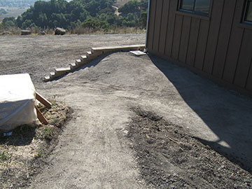 Laurence and his guy got the path up to the barn stairs complete and all the rest of the rock distributed over the driveway. |
