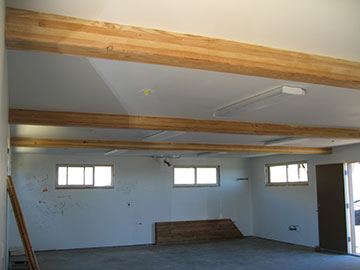 In the barn, my assistant had taken down all the decorations and was busy sanding and sealing the beams. |