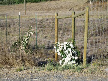 Here are the two roses below the gate. If you look back in the archives around the time we planted them, you can see how they—particularly the lower one—looked pretty peaked there for a while. But now, they could’t look healthier. I am so excited to see how well the roses are doing in this soil, because one of the reasons I wanted a place in the country was to have a huge rose garden. It is so encouraging to know that all I have to do is plant them and water them and they will be happy here. |