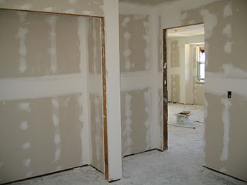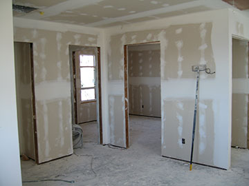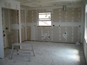 The drywall is complete. Here is a shot in the cottage looking from the living room into the bedroom. You can also see through the bathroom doors into the bedroom. I decided not to have them put texture over the drywall, because I really hate textured walls. I am hoping that a very heavy primer and flat paint will cover the imperfections on the walls. I hope I haven’t made a huge mistake! |