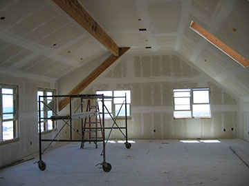 I put this picture in because as you can see, the skylights have not been finished inside the frames. Kai says that he wants to finish them with wood trim rather than box them in with drywall. I really didn’t understand what he was saying because I always thought they would be finished with wood. Thank goodness he came to the same conclusion, I don’t think I would like drywall trim. |