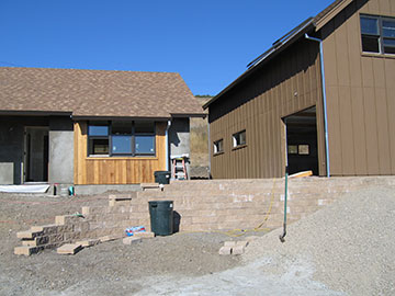 They have the second coat of plaster on the guest cottage and Kai’s crew is wetting it down every day to help it cure slowly. I actually like the gray, kind of, although the final plaster coat will match the barn in color. I am getting awning strips made to stretch between the barn and cottage. They will hook onto both buildings and hopefully because they are independent pieces, the wind will blow between them. This should be completed by the end of next week, so we will see how they work then. Also by the end of next week, the grading should be finished and the pile of gravel in the foreground spread on the driveway up to the barn. |