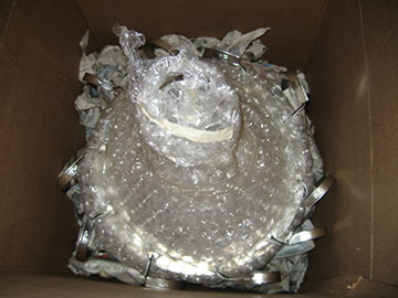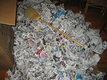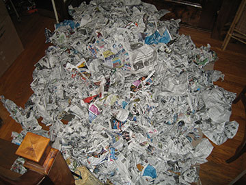 Ok, here’s the bonus, crumpled newspaper! Yay! Actually, all this—and more—came packed around our chandelier. The box, which supposedly weighed 75 lbs. was so stuffed with newspaper, that when we packed the chandelier back up, we had enough left over to fill a giant black garbage bag. |