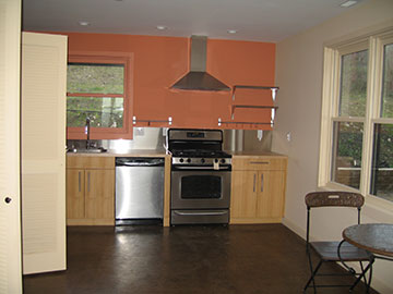 The kitchen looks great. I do want to get two more shelves—one for either side of the kitchen wall—to go above the two shelves we already have. We need as much storage as we can get and I think they will make a nice addition to the look. | |