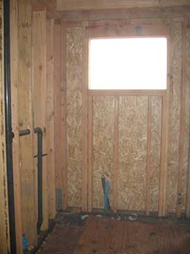 I got a little better shot of the guest bathroom—not that there is much to see. The bathtub will be under the window with the shower to the left. The space is small, but I got a good, cast-iron tub with an apron to go in this bathroom. | |