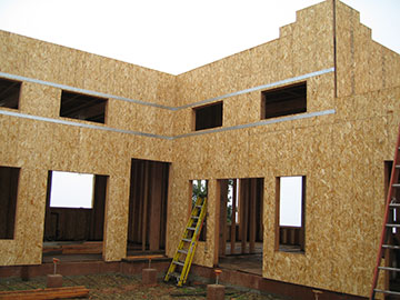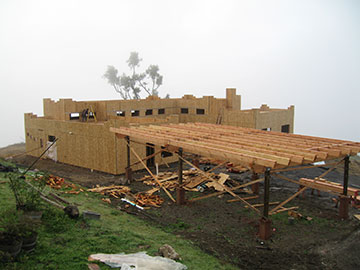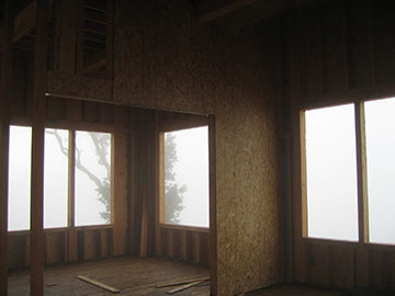 From the barn balcony, you can see that the structure is closed in and almost ready for windows. | |