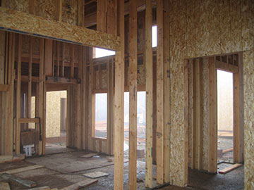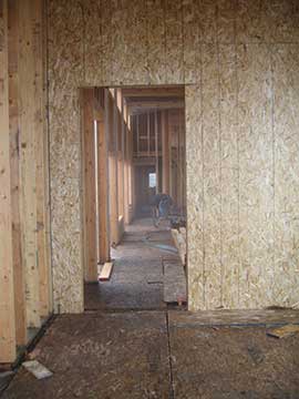 Here we are looking from the living room toward the dining room. Later during the day, the cabinet makers came by to take field measurements for the cabinets. They discovered that the opening for the huge window in the dining room was off center. Luckily, it can be easily corrected with the movement of a stud from one side to the other. Whew! | |