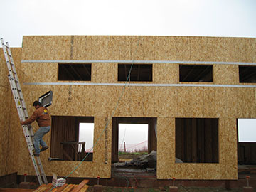 Kai is carrying a skylight up the ladder to be installed in the utility wing roof. Much of the light in those rooms will come from skylights. These skylights have 3 layers of light-diffusing plastic, instead of glass, and deflect most of the sun’s heat from while letting in plenty of light. They are amazingly effective. I stood under one in someone else’s house when it was 90 degrees outside. You really could hardly feel any difference in temperature when you walked under it—unlike a normal skylight which heats up the space underneath it. Plus, they are actually cheaper than glass ones. |