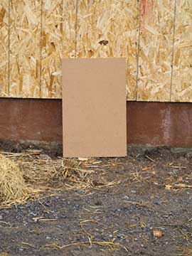This is the test board for the house color. It will be a little lighter than the barn and guest cottage, but a color from the same strip in the swatch book. It shows as a disgusting pink on my computer, and who knows what it will look like on yours, but take my word for it, it is actually adobe brown. | |