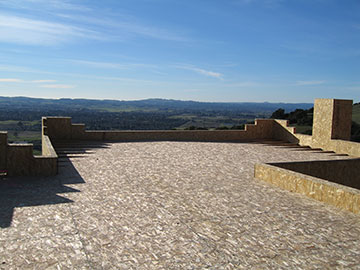 I took another shot of the new front gate (and me in shadow) from a different position. The covered walkway around the courtyard will extend over the wall to the front now, forming a porch over the gate. | |