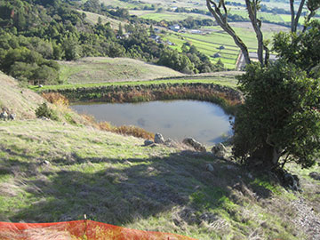 Looking at the pond from the roof, it is still very low—despite the rain—although it doesn’t look it from this photo. I had never seen this view before, so it was fun to see it. If our house were two stories, we would have a view of the pond from the second story, but, oh well, we will just have to tough it out without it. | |