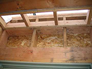 This is the “roof” of the pop-out. It was framed incorrectly, so Kai will have to redo it. It will be under the walkway roof instead of having regular roofing on it, so it is not as urgent as it would otherwise be. He will also have to reframe below the window to allow for the grid to be installed, but, again, it should not be too difficult. |