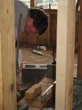 The masons were just whipping the fireplace together and by late morning had made a lot of progress. |