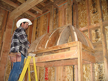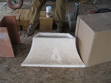 Thomas had cut the forms for the range hood. Right now, there are supports in the front, but they will be removed when it is finished. | |