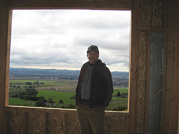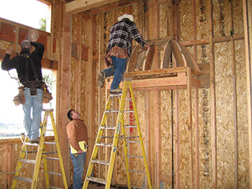 Todd and Abe arrived for the walk-through. Todd was very happy with the way the dining room is coming out. His comment is that it would seem like we are floating out over the view when it was done. The dining room is kind of like the prow of a ship. And since the land falls away so steeply on both sides, the view is really stellar. |