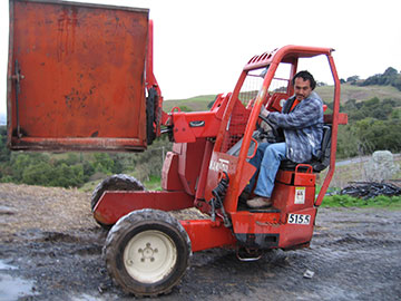 The driver had the weirdest, little, 3-wheeled fork-lift that I have ever seen, but he said it was very strong for unloading pallets of brick and loads of sand. | |