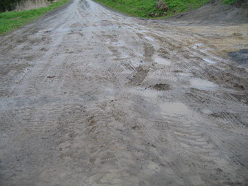 I took this picture to show how soggy the driveway got. It is still hard because of the all the good base in it, but is wet as wet can be. The previous night, the temp had been down to 36° and if it had frozen, what an ice rink that would be. | |
