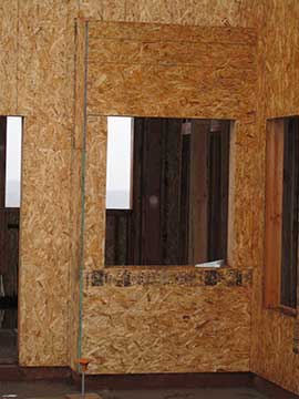 Here is another view of our courtyard lake. One thing of interest is our little pop-out, which is finally framed in. One of the irritating things about our current house is the number of trips you must take down the little back stair, through the back door, up the little stair to the patio with each load to set a table or serve a meal. The window in this pop-out will be the only sash window in the house, raising to act as a pass-through to the courtyard. What’s more, there is going to be a little counter inside—with a light above it—to set your utensils and dishes on. Below the counter will be our vegetable cooler, with a screen to the outside, so we can keep produce and bread cool without putting them in the fridge. |