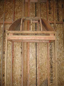 Here is a shot of the final form for the range hood. If you can visualize it covered in smooth, creamy plaster, you will get a good idea of what we will end up with. | |