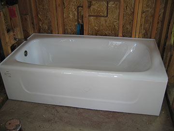 Here is the guest bath tub. I wanted a real cast-iron tub for the guest bath but all the cast-iron tubs now are so shallow. This one is short—to fit the space—but you can take a bath and get more than your butt wet since it is nice and deep. I hope our guests enjoy it! | |