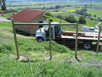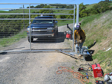 Here Keith Soreng's gate guys install the new gate. It will have a keypad that we can program via computer when the phone line is installed. Eventually, we will be able to assign you all your own codes—something that you can easily remember—instead of having everyone use the same code. Cool, huh? By the way, I can't say enough good things about Keith Soreng and his company Golden Gates. |