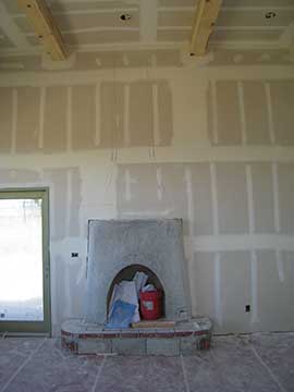 From this slightly side view of the fireplace, you can better understand why we want the chimney. Currently, the fireplace has a kind of lost look. We think the chimney will make it seem more like part of the structure. | |