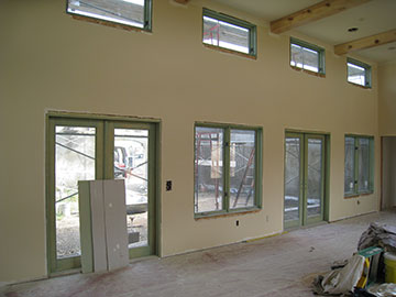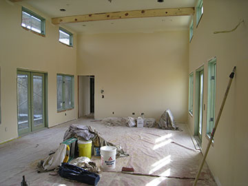 This stack of stuff is the dining room buffet which will go under the large window on the right. There will be cabinets on either side of the window with the buffet in between. The buffet will have a green granite top. | |