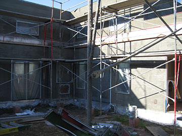 The stucco guys left their hoses laid out very carefully on the ground until the next coat goes on. | |