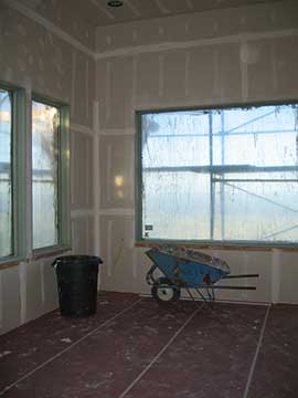 Inside the house, the taping was complete and the drywall crew was starting on the mudding process. | |