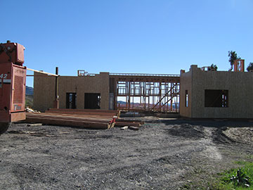 The controversial ear got sheathed. The ear controversy has opened a can of worms, because it made me realize how tall the wall across the front of the courtyard would be. I am afraid that the house would look too Alamo-like. Thomas, the framing chief, said that I have about a month to make up my mind on this before it’s critical. I am working with Todd’s office on a redesign. |