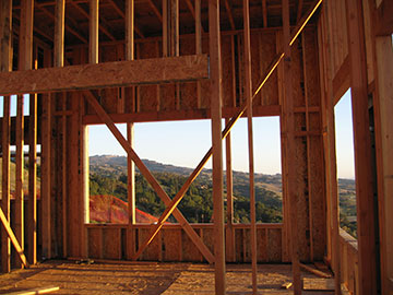 This is the large dining room window array. Inside you see the framing for the dining room walls. | |