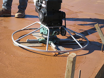 Meanwhile, back on the west side, one of the finishing crew was running a motorized trowel over the already hardening floor. This was about 10:30ish and he could already stand on concrete that had been sopping wet a few hours ago. |